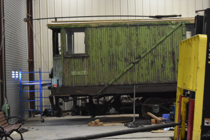 Reading Transit and Light Company 102 built by J.G. Brill Company in 1918 and represents a fleet of 21 similar "semi-convertible" trolleys ordered by the Reading, Pennsylvania system in 1916 and 1918. These suburban cars were the final evolution of the classic side-of-the-road trolleys that served a connected network of trolley companies that once stretched from Philadelphia, Trenton and Wilmington westward past Carlisle. Car 102 operated on all three RT&L divisions - Lebanon, Norristown and Reading - traveling the rails from the Wissahickon section of Philadelphia all the way to Palmyra. Car 102 was retired in 1947 but its carbody was soon bought and conserved by Paul Rhoads and family. Honoured as the first car to be rolled into the Electric City museum building, car 102 now sits on trolley trucks retrieved from Georgia and awaits its turn for full restoration.