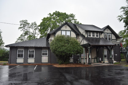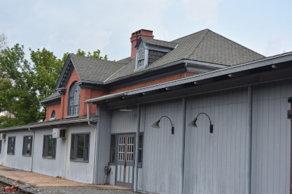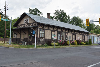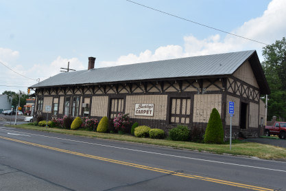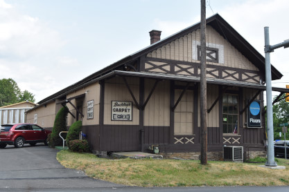 Reading Railroad Danville station built in 1876, now home to a carpet store. This station was built as the Philadelphia and Reading Centennial station for the 1876 Centennial Exposition in Philadelphia and was moved to Danville in 1881.