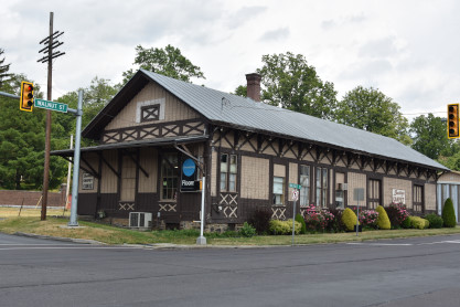 Pennsylvania Railroad Northumberland station built in 1910 which is the Front Street Station Restaurant. Two railroad pasenger cars make up this station.