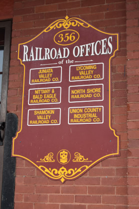 This building houses the six shortline railroads that serve the area: Juniata Valley Railroad Company, Lycoming Valley Railroad Company, Nittany and Bald Eagle Railroad Company, North Shore Railroad Company, ShamokinValley Railroad Company, Union County Industrial Railroad Company.