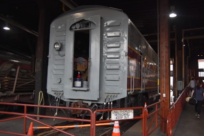 The car was sold to Mr. Dick Horstmann in 1976 who operated it extensively and continued the quality care and maintenance the car had always received. Its most recent owner, DL&W Corporation, purchased the car in September 1996. The car was donated to the National Park Service collection by DLW Corporation in 2015. The 1997 restoration returned the car to its steam-era appearance. Mr. Rob Mangels led the restoration effort and Ms. Michele Blair did the beautiful mahogany finish. The effort began in September 1996 and was completed in August 1997. The car received a full mechanical update and was qualified to run on Amtrak movements at speeds up to 100 miles per hour. It was one of the oldest cars moving on Amtrak. The exterior in Cornell Red matches the color the car was repainted in 1939, when all Lehigh Valley mainline passenger equipment was repainted. Except for some minor equipment modernization details, the exterior appearance is as it looked in the 1930's, after its upgrading to include air conditioning. The interior of the car has been restored to the way it would have appeared from the mid-1920's to the late 1940's, the last 20-plus years of the steam era. All interior walls remain as originally constructed, having never been modified – again, quite rare for such a car. The faux painting of the walls matches the original treatment. When constructed in 1916 all-steel cars were a relatively new phenomenon and viewed as a major technological and safety advance. Therefore, the LV 353 was built by Pullman Standard Company in all-steel, but the beautiful simulated-mahogany interior was made possible by the Pullman Company's accomplished artists. Ms. Blair faithfully restored this original look.