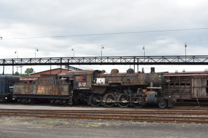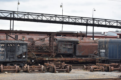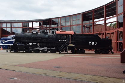 Illinois Central 2-8-0 790 built by American Locomotive Company (Cooke) in 1903. Designed to haul freight trains, 641 was probably better utilised by the Illinois Central than it would have been if it continued working in Chicago's Union Station transfer yard. 641 hauled freight in Tennessee for most of its life and was rebuilt in 1920 with a superheater and possibly replacement boiler and firebox. It was renumbered 790 in 1940 and remained on the Illinois Central roster until near the end of steam. In 1959, the steam engine was sold to Louis S. Keller of Cedar Rapids, Iowa, who planned to use it on railfan excursions between Cedar Rapids and Manchester, Iowa, although the excursions never eventuated. In 1965, 790 was sold to David de Camp, who moved it to Lake Placid, New York, hoping to operate it there. However, it never steamed again and was sold to Blount in 1966. It is the only Chicago Union Transfer locomotive to have survived.