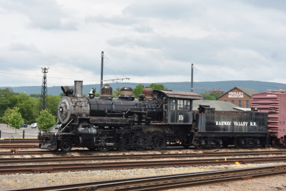 Rahway Valley 2-8-0 15, nee Oneida and Western 20, built by Baldwin in 1915. In 1937, it was sold to the Rahway Valley Railway at Kenilworth, New Jersey and re-numbered 15. The Rahway Valley was a New Jersey shortline that operated from 1897 until 1992. During the first few decades of the 20th century, it was one of the most successful shortline railroads in US history. 15 joined three other Consolidations at the Rahway and worked until 1951. The Rahway bought its first diesel in 1951 and 15 worked relief when the diesel needed repair until 1953.