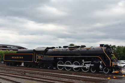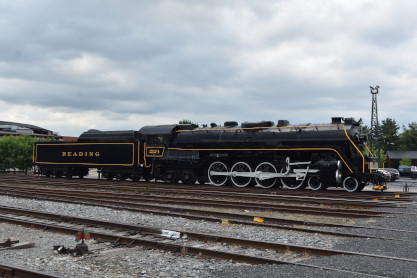 Reading Railroad 4-8-4 2124 built by Reading Shops in 1947. The first twenty T-1s were designed to haul freight, largely coal traffic, the last ten to haul passenger trains but, except for a few troop trains, mainly hauled freight. They worked until 1956 when all steam was retired on the Reading Railroad. The company kept only four steam locomotives: T-1s 2100, 2101, 2102 and 2124. In 1959, 2124 re-entered active service on the first of the "Iron Horse Rambles", also known as the "Reading Rambles", on 16th October, hauling sixteen passenger cars full of railfans from Wayne Junction to Shamokin. 2124 made a brief appearance in the opening scenes of the film "From the Terrace" with Joanne Woodward and Myrna Loy, shot at Jersey City, New Jersey. The Reading Company ran fifty-one "Iron Horse Rambles" excursions from 1959 to 1964, also utilising T-1s 2100 and 2102. The last excursion ran on 17th October 1964. However, 2124 was taken out of service after a trip in October 1961 and was then sold to F. Nelson Blount in 1962 and joined the Steamtown collection.