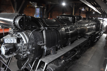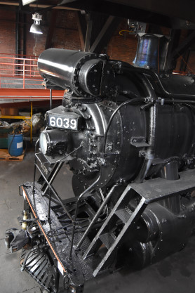 Grand Trunk Western 4-8-2 6039 built by Baldwin in 1925. Fitted with feedwater heaters, power reverse gear and automatic or mechanical stokers, they were the first locomotives on the GTW to feature both Vanderbilt tenders and enclosed, all-weather cabs. Although designed for passenger service, the Grand Trunk Western soon put them to work on fast freight trains. In the late 1950s, 6039 was leased to the Central Vermont Railway. It was bought by Blount in 1959 for $7,425.