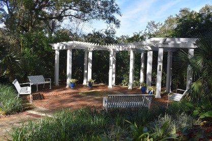 Home Demonstration Garden: Since its opening in 2003 this three acre space has been devoted to educational displays including noteworthy plants and architectural techniques and materials suitable for Central Florida gardeners. It is divided into ten residentially scaled "idea gardens" showcasing different plant groups that include the following gardens: Bird, Bog, Enabling, Evening, Fragrance, Ornamental Grass, Shade, Subtropical Fruit, Urban Patio and Wildflower. The Bird Garden displays plants that attract and sustain birds in Central Florida. Some of the plants produce fruit and berries for birds to eat while other plants have dense growth habits that allow birds cover or nesting sites. There are also flowering plants that hummingbirds feed from and find attractive. The Bog Garden demonstrates plants that can tolerate growing in a wet location in the landscape. This is an area in which water can stand for several hours to a couple of days at a time following a heavy rainfall but is not permanent. The soil is very heavy and poorly drained. A "dry" streambed runs through the center of the Bog Garden but does not have a permanent flow of water. The Enabling Garden was specifically designed to support Leu Garden's extensive horticultural therapy program. The beds are raised for gardening for several purposes; to provide accessibility for someone in a wheelchair, for someone who needs to remain seated most of the time or for people with visual impairments, because the plants are in closer range than on the ground. The plantings in these beds may change throughout the year.