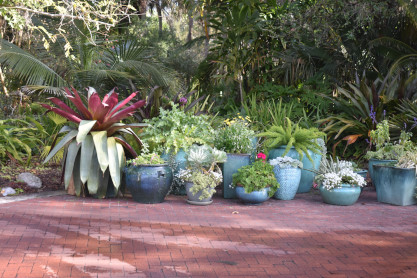 Bromeliad Collection: Bromeliads are a large diverse group of plants that belong to the Bromeliaceae Family. Many have brilliant colored inflorescences while others have strikingly colored foliage. Some bromeliads are terrestrial (grow in the ground) while many others are epiphytic (grow on trees). Bromeliads can be found throughout the Garden.