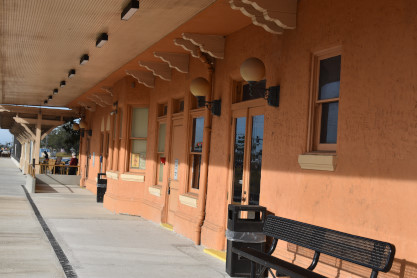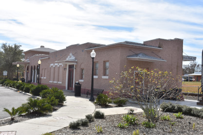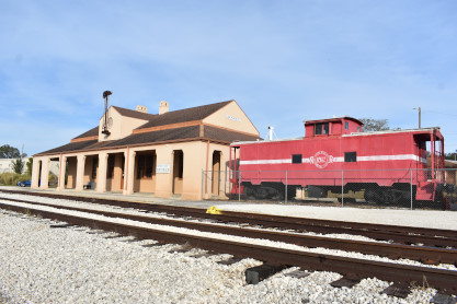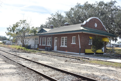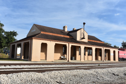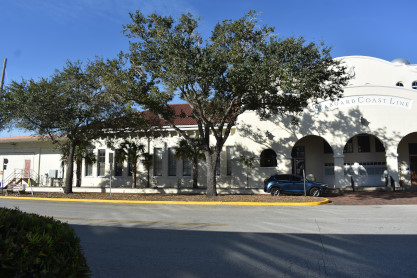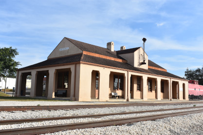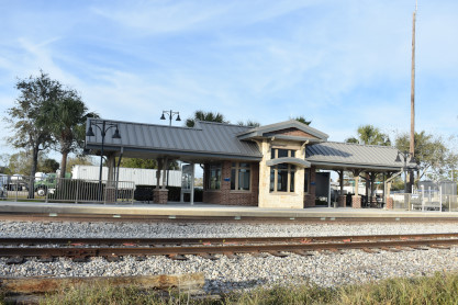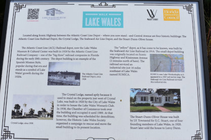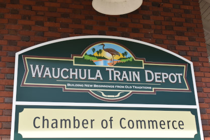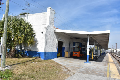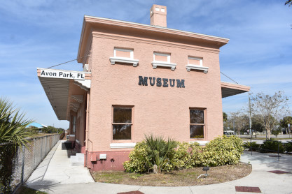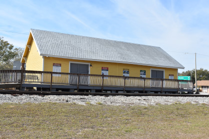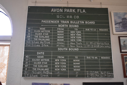 Wyckoff Overlook: The boardwalk and gazebo on Lake Rowena are named for John Wyckoff, one of the Garden's original board members. The lakeshore area now contains an aquatic wetland garden, with the plants being almost entirely native. Watch for birds and wildlife-but do not feed the alligators!! The main part of Leu Gardens. The butterfly gardens. More of the Leu Gardens. The bamboo, the largest bamboo that I have ever seen. My last picture was the flags on display. I drove us to the Winter Haven station. Seaboard Air Line Winter Haven station built in 1925. Next I drove us to Lake Wales. Seaboard Air Line Lake Wales station built in 1916 and home to the Lake Wales Model Railroad Club. Atlantic Coast Line Lake Wales station built in 1928, home of the Lake Wales Museum and Cultural Center. We were surprised by what else was on display here. Seaboard Air Line caboose 5341 built by American Car and Foundry in 1926. United States Army 65 ton switcher 8416 built by Whitcomb in 1944. After World War II, it became Virginia-Carolina Chemical 23 and later Mobil 222. United States Army switcher builder's plate. Savannah and Atlanta business car 19, nee Southern 19 built by Pullman in 1916. The train display in Lake Wales. History of Lake Wales display board. Next I drove us to Frostproof. Atlantic Coast Line Frostproof station built in 1912. From here we made our way to Avon Park. Western Pacific 16-section sleeper 871 "Silver Palm" built by Budd in 1948 for the California Zephyr. It was re-configured in 1964 to a 48-seat chair car then sold to the Auto Train Corporation in 1971, re-configured to a 52-seat buffet lounge and numbered 580. Atlantic Coast Line Avon Park station built in 1925 and home to the Avon Park Historical Society Depot Museum. Avon Park station timetable board. From here I drove us to Wauchula. Atlantic Coast Line Wauchula station built in 1914. Wauchula station station sign. We continued on our way south to Zolfo Springs. Brooks Scanlon 2-6-2 7 built by Baldwin in 1914 as Carpenter-O'Brian Company 3 at Eastport, Florida and in 1917, became Brooks-Scanlon Corporation 3. Through a 1934 corporate sale, it became Brooks-Scanlon Incorporated 3, later sold to Revell Crate Company and in 1967 donated to Peace River Valley Historical Society. Information plate on the engine. Next I drove us to Sebring. Seaboard Air Line Sebring station built in 1924. CSX 3046 East came through unexpectedly. The next stop was Lake Placid. Atlantic Coast Line Lake Placid station built in 1926 which houses the Lake Placid Historical Society. Seboard Coast Line caboose 0932, which later became Seaboard System 20932, built by the railroad in-, numbered 8982. Station and caboose. Next I drove us to Okeechobee. Amtrak Okeechobee passenger shelter built in 2011. Elizabeth drove us to Arby's before taking us to Fort Pierce and our overnight stay at Days Inn.