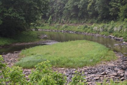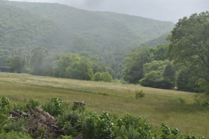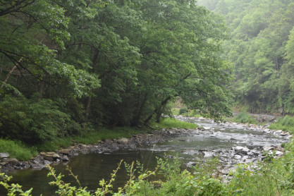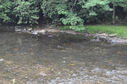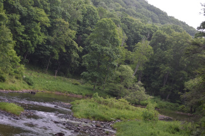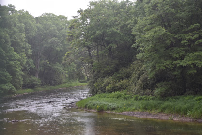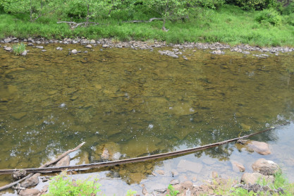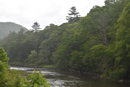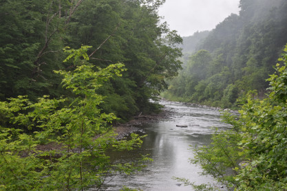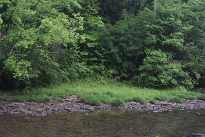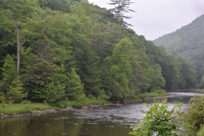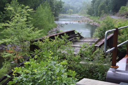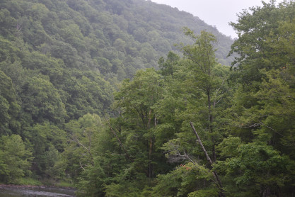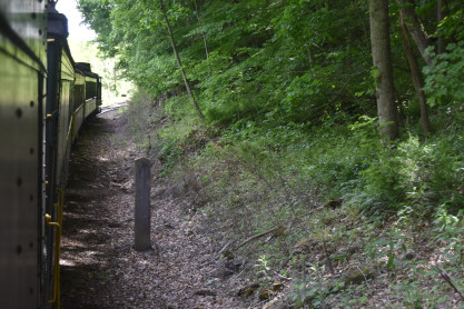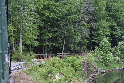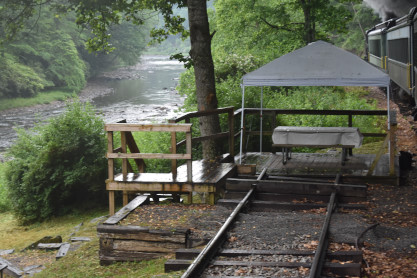 The views on the way to Durbin with a much lower and slower-flowing Greenbrier River than when we rode the inauguraul train over the line during the 60th Anniversary Railfan event on May 6. Upon arrival,we walked across the street to the Simply Sweet Cafe where we rolls, cold cuts, lettuce, tomato, onion and condiments were waiting for us, as well as potato chips, apple sauce, macaroni salad and cookies. After a fulflling meal, we walked back to the train in a light drizzle and reboarded.