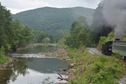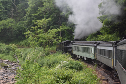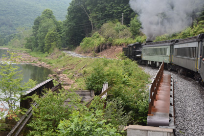 The original 95-mile section of this railroad was first constructed in 1902 by the Chesapeake and Ohio Railway with an eye toward timber resource development. It continued serving that purpose until rail traffic declined and most of the line was abandoned in 1978. Today's trip takes you on the northernmost 15-mile portion that was purchased by the West Virginia State Rail Authority. Unfortunately, a catastrophic flood in 1985 washed out major portions of this line. Thanks to a private/public initiative between the West Virginia State Rail Authority and Durbin & Greenbrier Valley Railroad, the track has been reconstructed and now offers a new and different option to visitors at the iconic Cass Scenic Railroad State Park.
