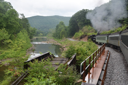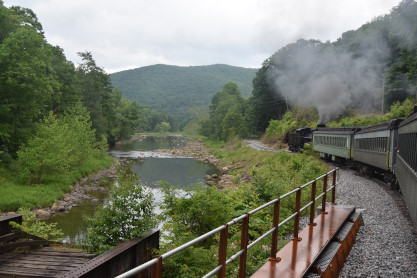 Trip SummaryThe Greenbrier Express train departs from the restored, historically important town of Cass and closely follows the clear, free-flowing Greenbrier River to the small mountain village of Durbin. On arrival in Durbin, all ticket holders will be served lunch at a pre-determined location either on your train car, in the depot or at one of the restaurants on Main Street adjacent to the depot. The ride upriver to Durbin passes through a secluded wilderness portion of the 950,000-acre Monongahela National Forest featuring beautiful scenes of forested mountains at each turn of the river. Sightings of deer, river otters and black bear along with a wide variety of eagles, hawks, ospreys and other species of aquatic birds are common.