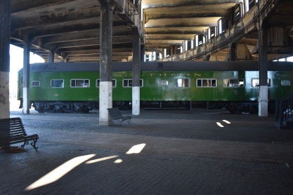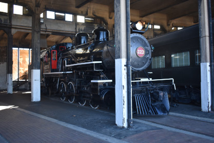 The roundhouse was completed in 1855. It was circular and was only 250 feet in diameter. In 1926, half of the building was demolished, re-designed and expanded in order to accommodate larger steam locomotives. The roundhouse was divided into 34 bays, each 134 feet long. The floor was made out of wood bricks because they absorbed grease, oil and water and were easy to maintain and protected tools and cast iron parts from damage when dropping.