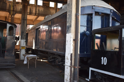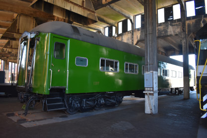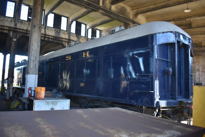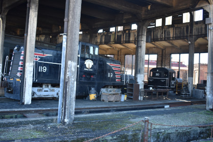 The Paint Shop was built in 1925. The upper level of this building was used for both stripping and painting of passenger cars. The lower level included offices, the electrical department and a testing lab. Currently it is used to display a number of rolling stock and historic machines.