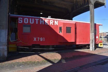Central of Georgia caboose X92 built by the railroad in 1942 from a 1916 ventilated boxcar and lettered as Southern Railway X791.