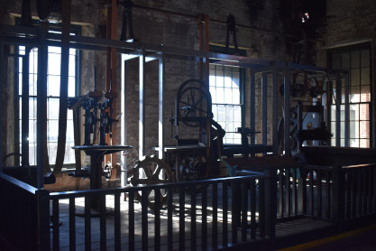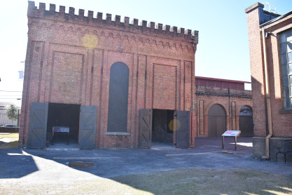 The engine house and boiler room, built in 1855, housed a boiler and stationary steam engine that provided power for the extensive belt-driven machinery throughout the site. Currently it houses a Finlay stationary steam engine built in Macon in 1852. It is the oldest Georgia-made stationary steam engine in the United States.