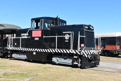 United States Army 44 ton switcher 7069 built by General Electric in 1942. It worked at the Army's Deseret Chemical Warfare Depot in Clover, Utah and was later transferred to the United States Air Force. The Claremont Concord Railroad in New Hampshire bought 7069 in 1988 and it worked for the railroad until 2008, when it was purchased by the Coastal Heritage Society to join the museum's collection.