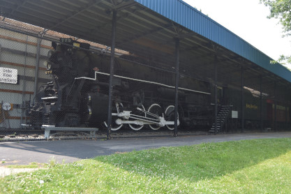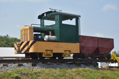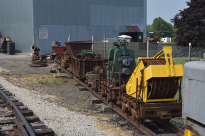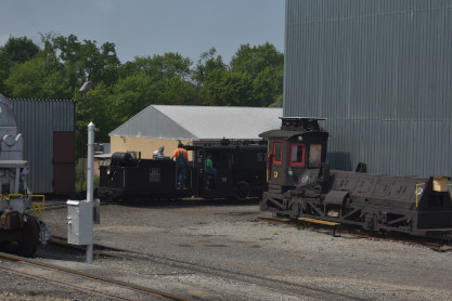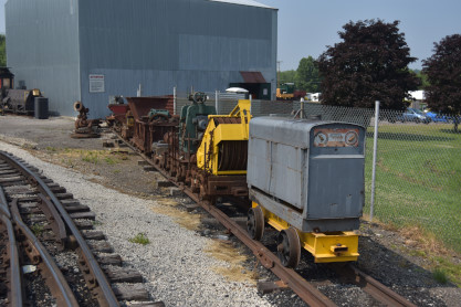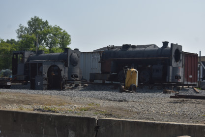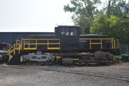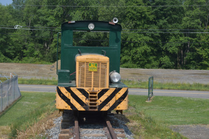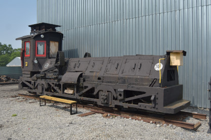 Standard Slag 70 ton switcher LM-6 built by General Electric in 1942 as York Central Railroad 512 and was originally used to switch passenger cars at large terminals during World War II. The locomotive was sold to Cambria Slag Co. in 1952 and moved slag (ore-refining waste) at plants in Sharpsville, Pennsylvnia, and Youngstown until 1980. Eventually, it sold to the Valley Mould & Iron Company in Hubbard, Ohio as 6114-A, for moving hot-metal cars between its melt shop and the ingot mold foundry building.