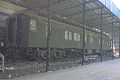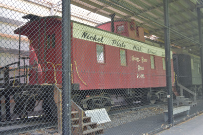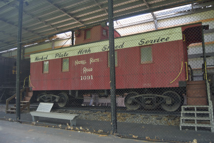 Nickel Plate Road wooden cupola caboose 1091 built by Lafayette Car Works in Lafayette, Indiana in 1882. It was renumbered 559091 when the NKP merged into the Norfolk & Western Railroad in 1964. It has been completely restored and equipped by the Allen County Historical Society. Although much of the structure had been replaced during its years of service, the corner posts, door posts and wooden bows which support the roof are original. Inside the caboose are the coal stove used for cooking and heating, a built-in icebox and bunks for the brakemen. Such wooden cabooses were gradually replaced by steel construction in the 1950's and 1960's.