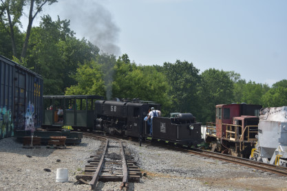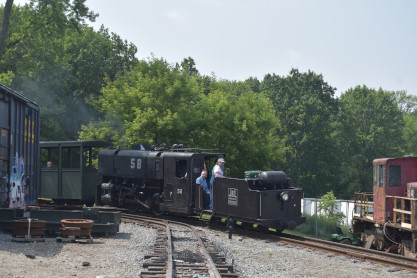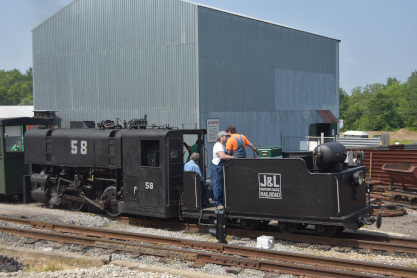 The first trip to the present end of the line. What great sounds Jones & Laughlin Steel 0-4-0T 58 puts out.