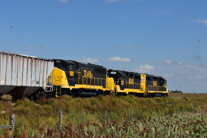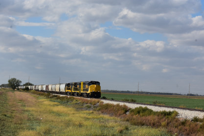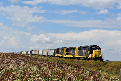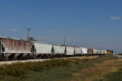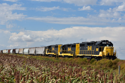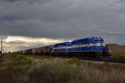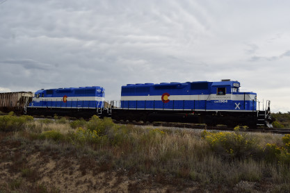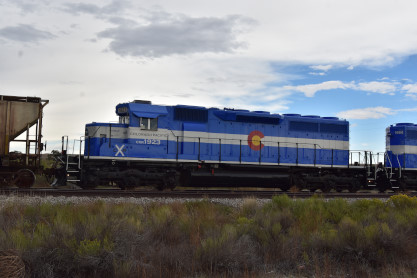 Colorado Pacific 1923 on a grain train at Boone, Colorado. Colorado Pacific Railroad is a rail line that runs from Towner, Colorado to NA Junction, east of Pueblo. It was purchased by the Soloviev Group in 2018 and enables communities in eastern Colorado and western Kansas to transport goods for domestic and international shipment via Union Pacific or BNSF Railroads. The Soloviev Group has refurbished and improved the line, including the construction of a new grain shuttle loader facility. It offers competitive tariff quotes and aims to minimize ground storage for local farmers and shippers.