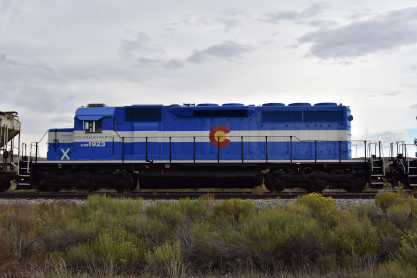Colorado Pacific SD40-2 1923, ex. National Railway Equipment 3019, exx. First Union Rail 3019, exxx. Electro Motive Division Leasing SD40 6402, exxxx. Electro Motive Division 402, exxxxx. Conrail 6331, exxxxxx. Penn Central 6078, nee Pennsylvania 607, built by Electro-Motive Division in 1966.