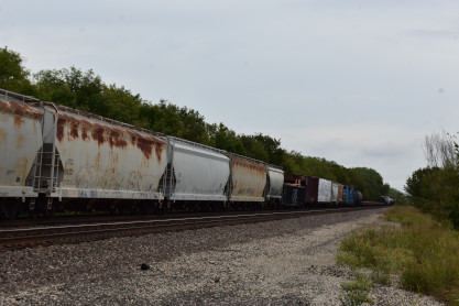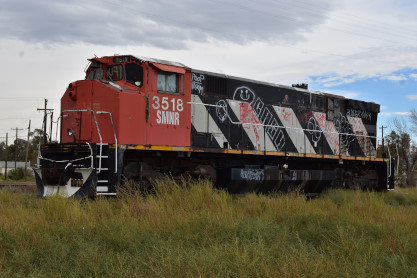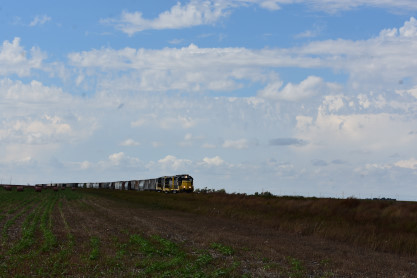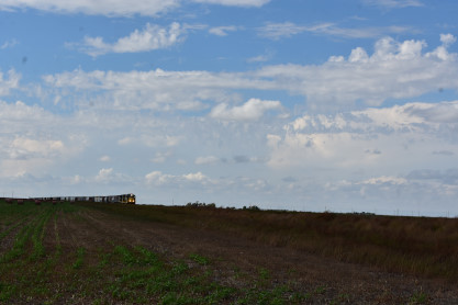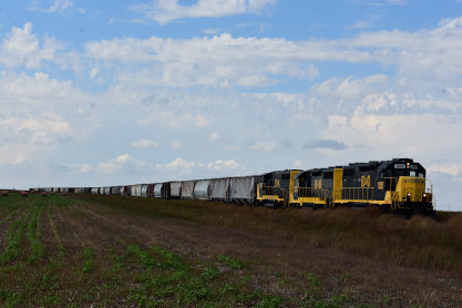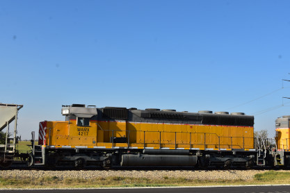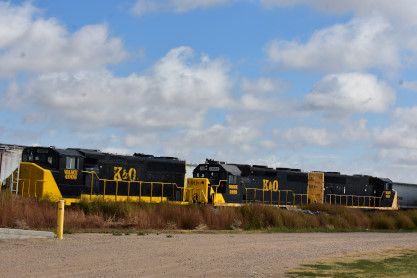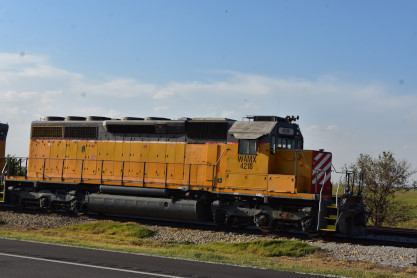 As we made our way through Ordway, we found Southern Manitoba M420W 3518, ex. San Manuel 3518, exx. Valley and Siletz Railroad 3518, nee Canadian National 2518, built by Montreal Locomotive Works in 1973.
