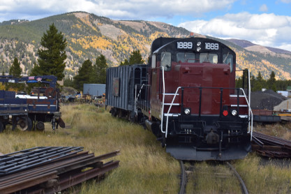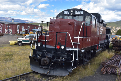 Leadville Colorado and Southern GP9 1889, ex. San Luis and Rio Grande 89, ex. Mount Hood 89, exxx. Minnesota Valley 306, nee Milwaukee Road 306 built by Electro-Motive Divison in 1959.