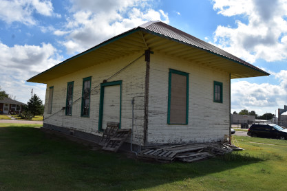 It was then sold to Don and Pam Smith of Pierceville who purchased the building and had it moved out on their land on the north side of Highway 50, with the intention of making it into their "dream home", but that was not to be. The State Highway Department was making the highway into a four-lane road and need the land owned by the Smith’s. The people were not given a choice. It was either sell the land to them or it would be condemned. After selling to the state, they made the decision to sell the depot to be moved off the land, as it was in their hearts to have the depot restored, and were happy that a group like us wanted to do it. This was a great opportunity for the Wichita County Historical Society. The depot was purchased in August.