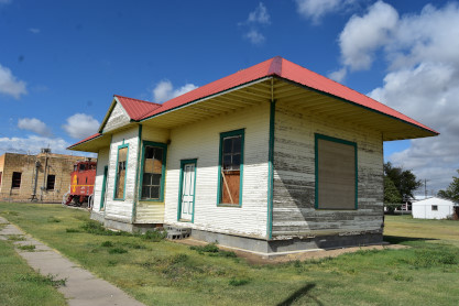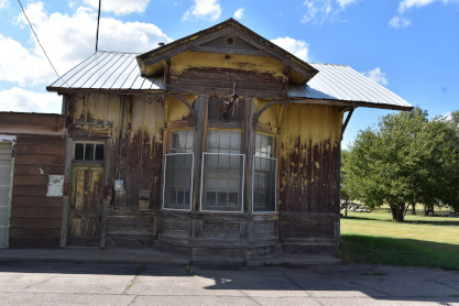 A very small shelter was built at Shallow Water and the larger depot at Alfalfa. Before long, Shallow Water was needing a real depot and the two buildings were exchanged, very possibly loaded on a railroad car and moved. The line was purchased by the Santa Fe Railway. After many years of service as a depot, where passengers made their connection with the Union Pacific on the north and the Santa Fe line at Garden City, it was sold to Charles Anstaett of Garden City and moved to his private property on the east side of Highway 83 in Finney County. The third move, still being owned by the same person, was to Garden City, in the vicinity of the Crazy House, where it sat for several more years.