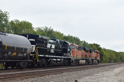 Between Strong City and Emporia, we passed a BNSF freight train which we stopped for, BNSF 4436 East, with Norfolk Southern AC446CM 4668 built by General Electric in 2023. I then drove us east on Interstate 35 and after we changed drivers at a rest area, Elizabeth drove east via Interstate 35 to Interstate 435.