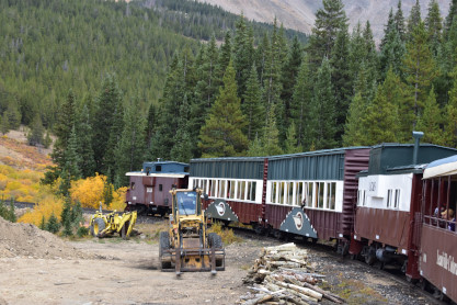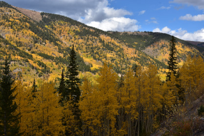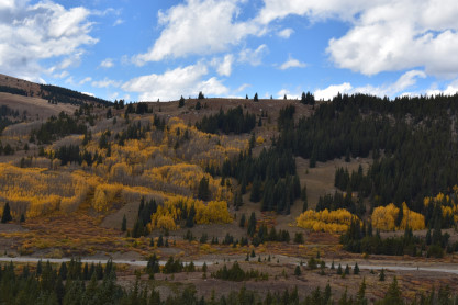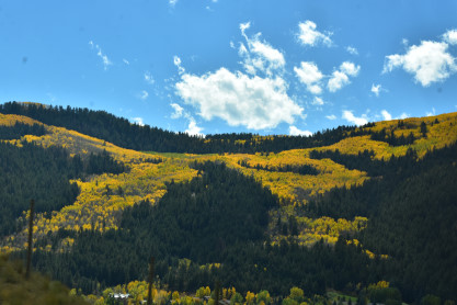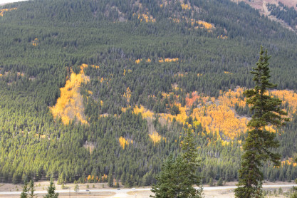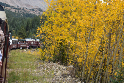Fall colors on the way to Leadville. I then took over at Gypsum and drove us to Leadville where we parked in the railroad's parking lot and I went in to pick up our tickets.