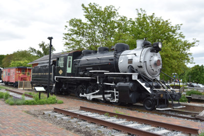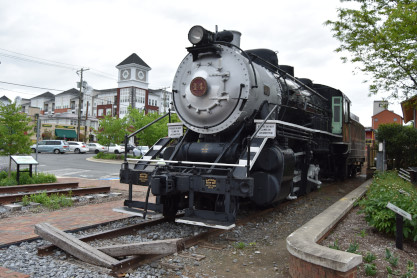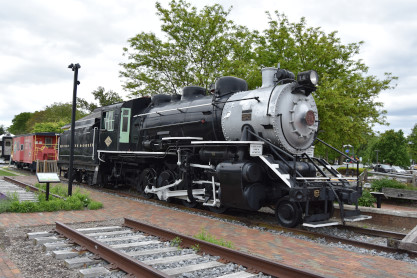 Buffalo Creek & Gauley Railroad 0-8-0 14 built by American Locomotive Company in 1918 and converted to a 2-8-0 just before it was sold to the Kelley's Creek & Northwestern Railroad as 1. Starting life as an 0-8-0 meant it was fitted with two sand domes and the conversion has left the front hand rails out of alignment with the steps. The Kelley's Creek & Northwestern was an eight mile coal hauling shortline owned by the Valley Camp Coal Company operating from 1903 until 1993. Engine 1 was sold to the Buffalo Creek & Gauley Railroad in 1954 where it was renumbered 14. In 1967, it was bought by Paul Hersch in Dundon, West Virginia, and then moved to Quakerstown, Pennsylvania in 1975. In 1980, it was donated to Historic Red Clay Valley Incorporated, which operates the Wilmington & Western in Wilmington, Delaware. In 1984, it was sold to Melvyn Small and then, at a later date to the City of Gaithersburg and is now on display next to the downtown Union depot.