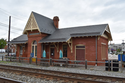 Baltimore and Ohio Gaithersburg station built in 1884 for the Metropolitan Branch of the railroad. It was was designed by Ephraim Francis Baldwin and consists of two historic buildings. The passenger station is a one-story common-bond brick structure with a gable roof. It is served by the MARC Brunswick Line service; it was also served by Amtrak from 1971 to 1986.