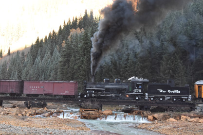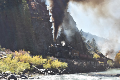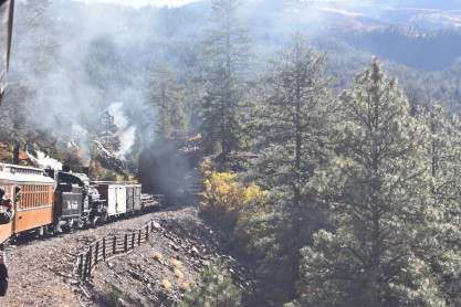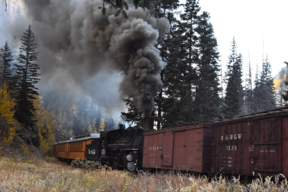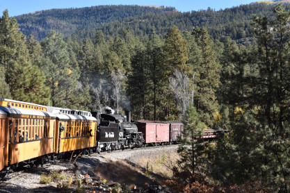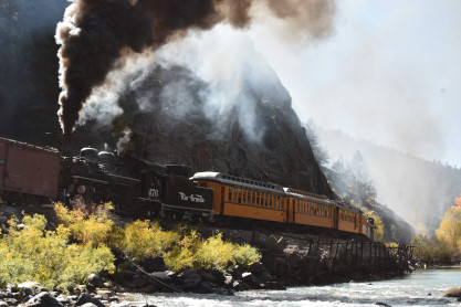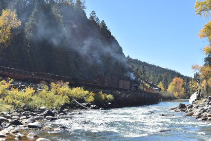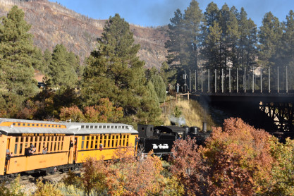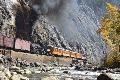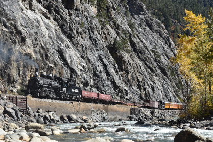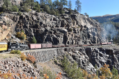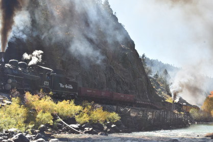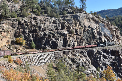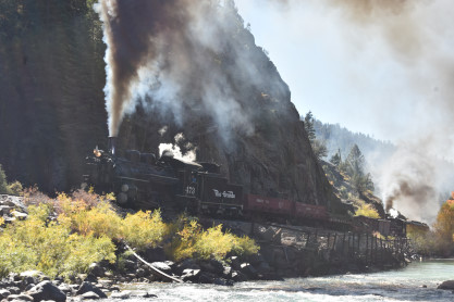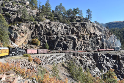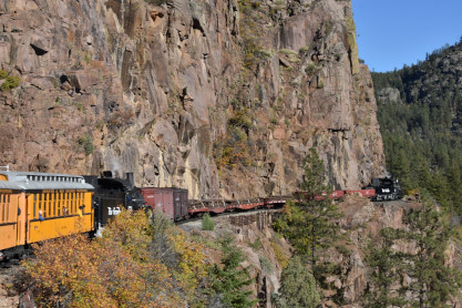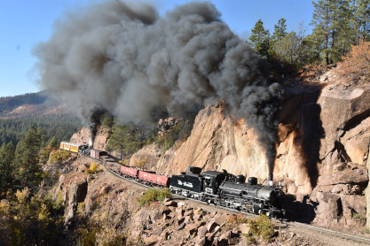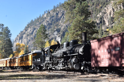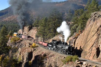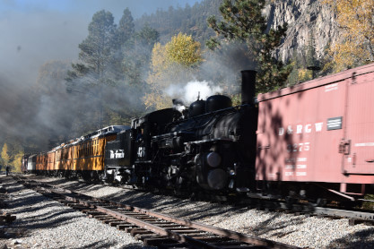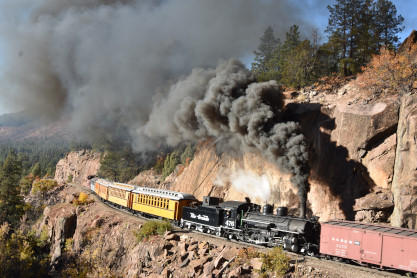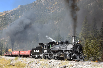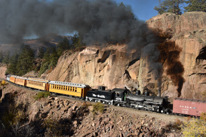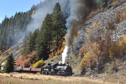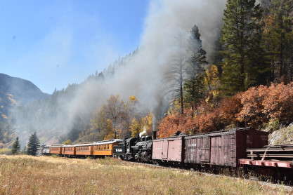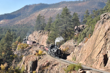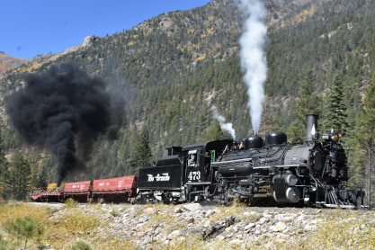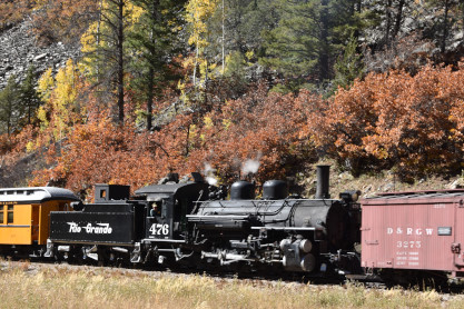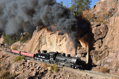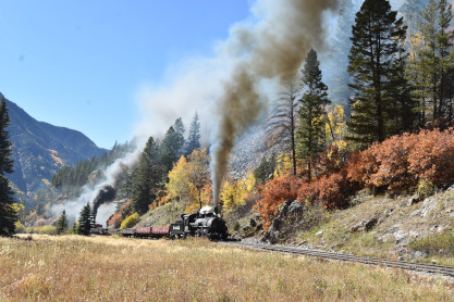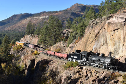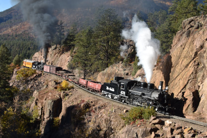K-28 100th Anniversary Excursion Specials Fall Photo Special Overview (October 16 & October 17th)In commemoration of our cherished K-28 locomotives turning 100 years old, the Durango and Silverton Narrow Gauge Railroad is pleased to offer a very rare and unique opportunity to experience an excursion from Durango to Silverton and return powered by two Alco K-28s. The helper will be cut in mid-train, recreating a look and train operating scenario that harkens back to earlier decades on the Denver & Rio Grande Western. The Silverton Train with mid-train helper will operate October 16th and 17th. The two-day experience will offer the northbound mid-train helper with numerous run by opportunities to photograph and video this historical recreation. The consist will include a caboose, three coaches, gondola, concession car, and eight freight cars with livery backdated to a mid-1950s Denver and Rio Grande Western look.
