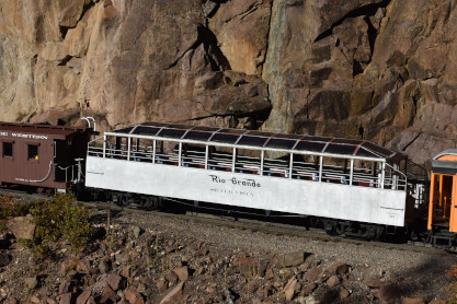 The train left Durango at 7:00 AM and we headed out of town and I soon rode in the "Silver Vista" as I enjoyed the morning air.