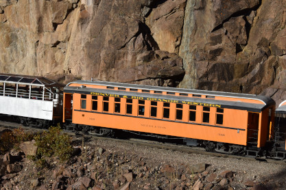Elizabeth and I arose at 5:00, we checked out of the Quality Inn and I drove us to Denny's for a great breakfast then drove the short distance to the Durango and Silverton's parking lot and from there, walked to the Durango and Silverton train station and waited inside. Later we gave our luggage to a member of the crew who put all the baggage in a Denver and Rio Grande Western box car and we all waited outside at the train's doors to be opened and chosek seats in the "Needelton" coach for trip to Silverton.