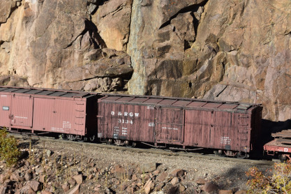 We climbed the grade to the US Highway 550 bridge before stopping at Rockwood to pick up the passengers who chased the train here. Once they were aboard, the train reversed and took us to Granite Point where we all climbed the point and I sat down to photograph the first two photo runbys. The reverse move one.