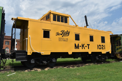 Missouri-Kansas-Texas caboose 1021 built by International Car in 1973.