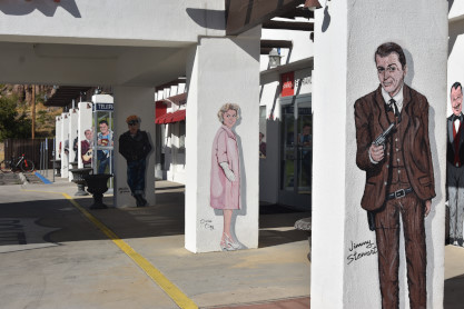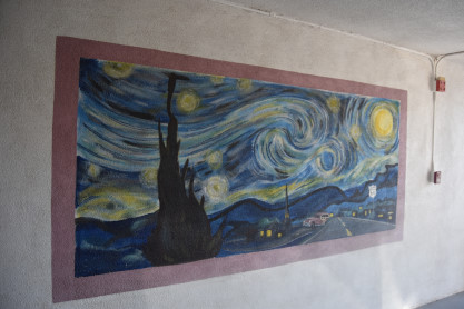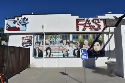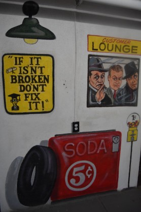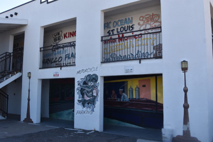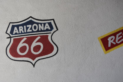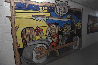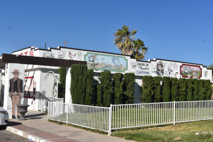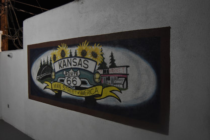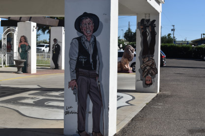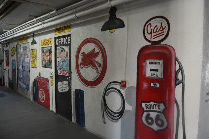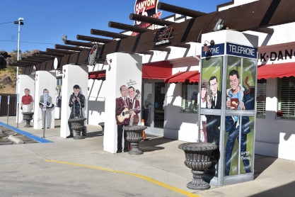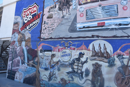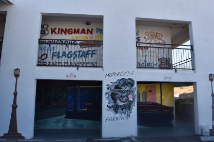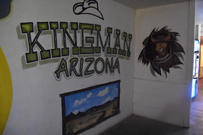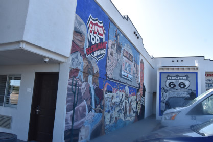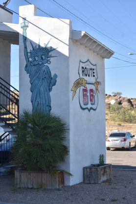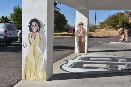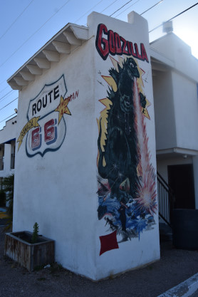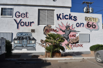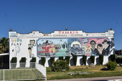 BNSF 4117 West. We then drove to Kingman and went to the Black Bear Diner for another fantastic dinner before going to the Ramada Inn where we checked in for the night. Elizabeth was not a happy camper at this hotel, the main reason being her first impression when driving into the parking lot was that the walls were covered with graffiti. In reality, it was paintings and Route 66-related images. Neither of us knew this when making our reservation and we would not stay here again.