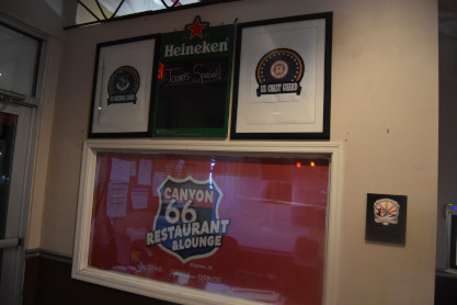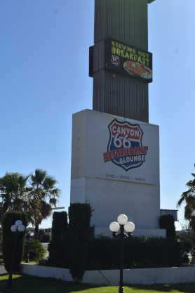 Canyon 66 Restaurant and Lounge sign out front of this motel.