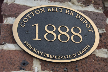 St. Louis-Southwestern Sherman Depot plaque on the building.
