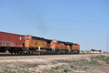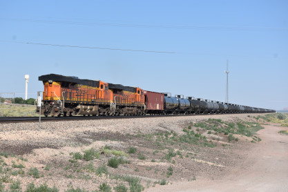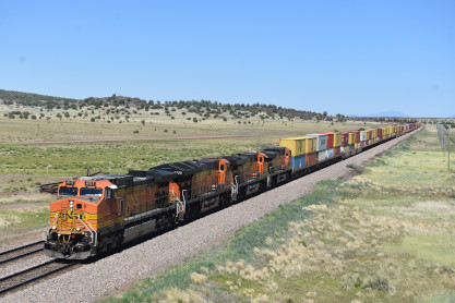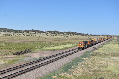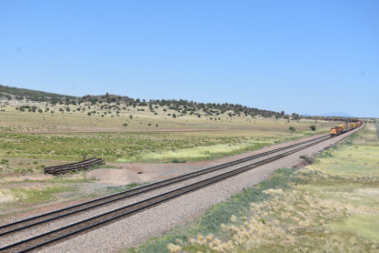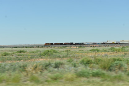 BNSF trains on the way along US 60 to US 64 to Interstate 40, where we switched drivers and Elizabeth drove to West Albuquerque, where we had linner at Jersey Mike's. I then resumed driving, taking us the rest of the way to Grants, where we checked into the Quailty Inn for the night.