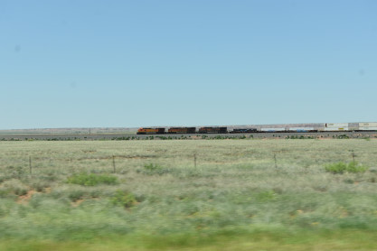 5/27/2023 We arose and following our morning preparations, checked out and drove to Denny's for breakfast then started the day's westward drive on Interstate 40 out to Prewitt, where we set up for pictures.