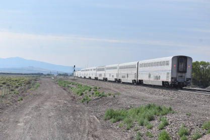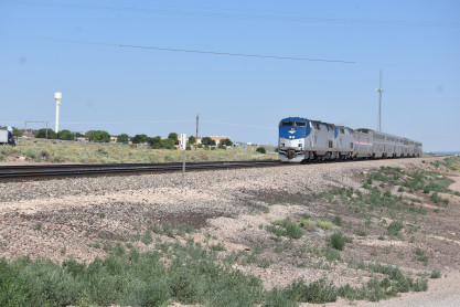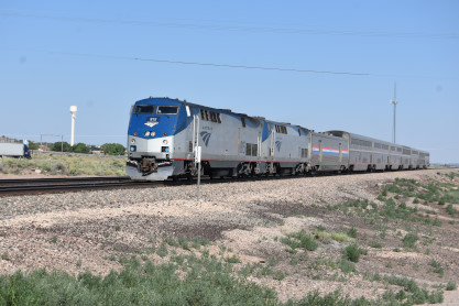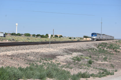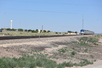 The eastbound Southwest Chief, Amtrak Train 4, came through Prewitt half an hour late. I drove us to Flagstaff then Elizabeth drove to the highway bridge on Route 66 at Crookton and we pulled off, hoping for a westbound train. After an hour's wait our hopes were realized.