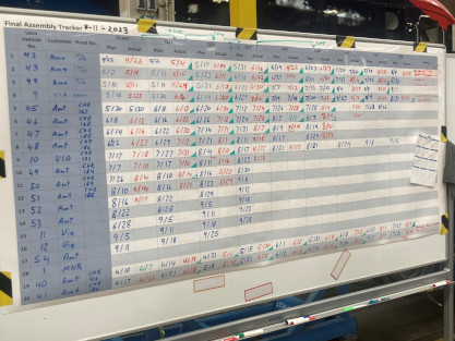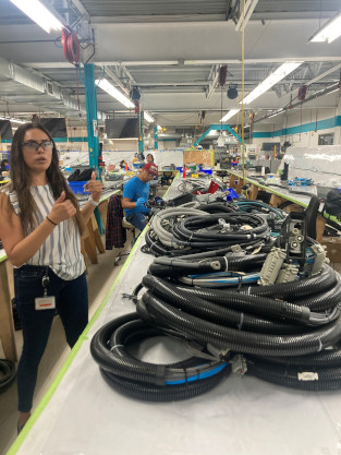 All pictures by Elizabeth Guenzler as my camera battery was not at full power.The Siemens sign on one of their many buildings. Hailey Rumsey of the Communications Department and Eberhard Lange, Head of Manufacturing, met us in the lobby of Building 4 and acted as our guides, with the department manager of each manufacturing floor covering operations for their area. The tour included the locomotive and Venture passenger car assembly buildings, the LRV manufacturing floor, the welding shop and the electrical shop where teams hand-assemble wiring harnesses for all products.