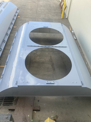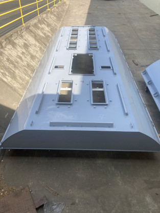 Side of the coach's steel panels. The wavy lines are the reflection of the overhead lights.