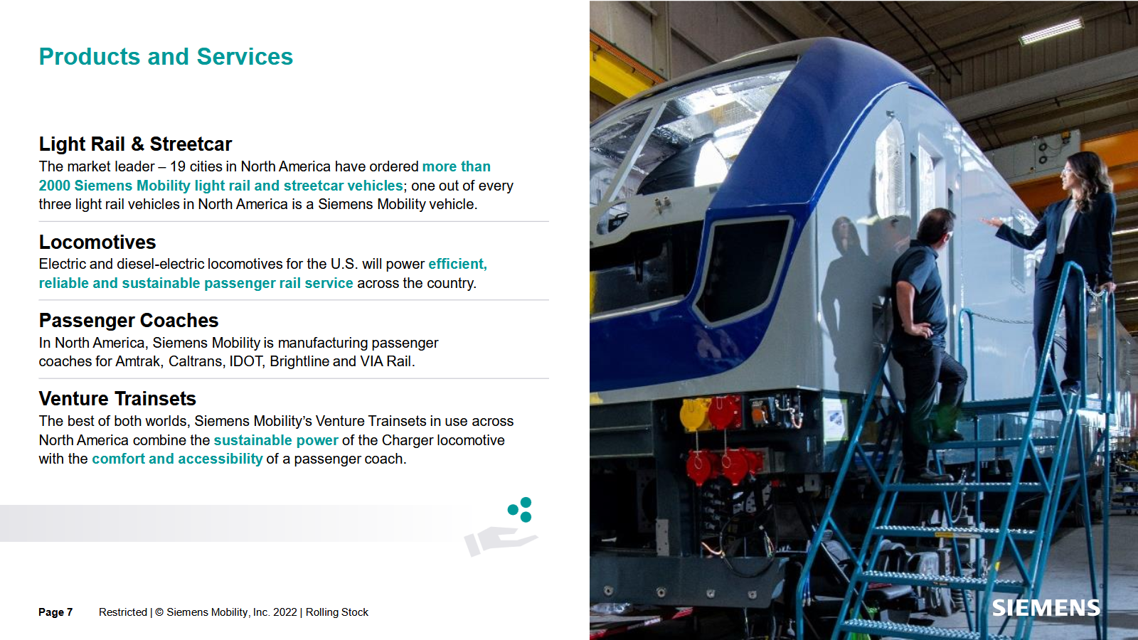 Charlotte S700 Streetcar. In 2018, Siemens Mobility introduced the latest innovation in low-floor light rail technology, an update of the 15-year-old S70 platform. Charlotte Area Transit System has tapped Siemens Mobility to build six new S700 streetcars to help meet growing ridership and the next expansion of what will soon be a ten-mile line.
