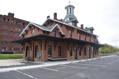 Green Mountain 40 foot box car 306 built by the railroad. This completes our coverage of Steamtown. Elizabeth and I drove out of the parking lot but I remembered the station across Lackawanna Boulevard.