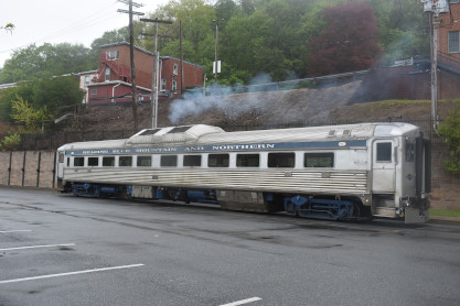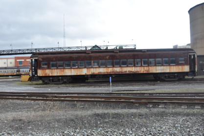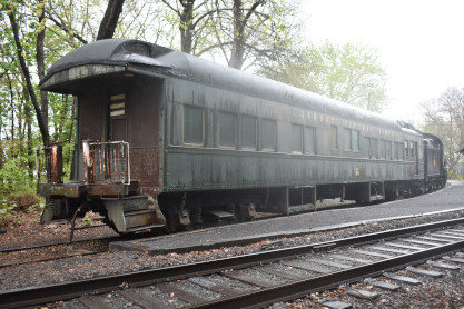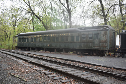 Central of New Jersey observation car 98 built by Harlan & Hollingsworth in 1914. The car was acquired by the Wanamaker, Kempton & Southern around October 1966. This car was not purchased by the railroad directly. Instead, four men from within the organization each chipped in $200 to cover the car's $800 purchase price. Motivation for the purchase was to provide the public with "something new" in 1967. Number 98 was moved to the south end of the back track behind the station. The back track or "museum track" was home to an collection of static displays and other attractions. This collection included 0-4-0 Cooke locomotive 3 at the north end of the track followed by LNE caboose 512, Atlantic City car 72, Baltimore and Ohio coach 4111 and then Central of New Jersey 98. The collection was called the Museum Train and was run by a separate non-profit organization called the Wanamaker, Kempton & Southern Rail Road and Historical Foundation. They planned to call 98 the "Mountain Queen" and had some grand restoration plans including a Royal Purple paint job. But the Foundation appears to have fizzled out with the railroad's closure at the end of 1968.