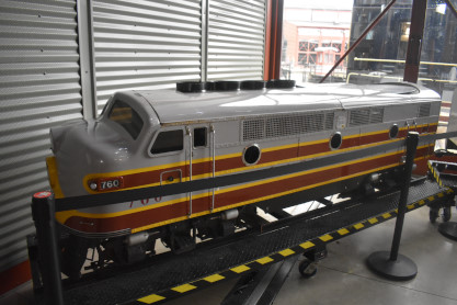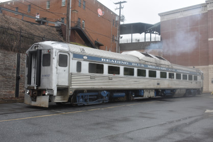 Reading Company FP7A 903 built by Electro-Motive Division in 1950. It later worked for the South East Pennsylvania Transporation Authority as 4373 until its retirement in 1981. In 1983, it was bought by the Philadelphia Chapter of the Railway and Locomotive Historial Society and displayed at the Railroad Museum of Pennsylvania. Restoration began in 1986 completed nine years later. It is now owned by the Reading Company Technical and Historical Society but on loan to Steamtown since 2010 to be used on excursion services in exchange for maintenance.